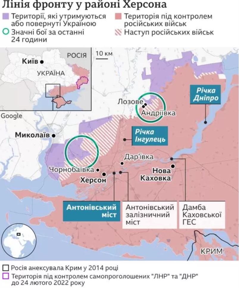 С конца июля Россия использует понтонную переправу у железнодорожного моста как основной путь снабжения своей армии. Даже если России удастся осуществить значительный ремонт мостов, они останутся главным уязвимым местом.