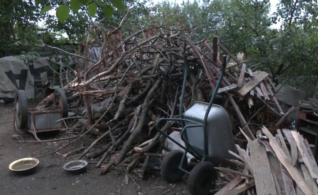 Возится по хозяйству и собирает хворост по дороге пенсионерка Оксана. Пенсии, чтобы закупить топливные материалы для зимы, не хватит: “Уголь 9 тысяч, уже узнала. Так это 9 тысяч в Запорожье, а еще привезти. Вот так и запасаюсь. Они же набили деревьев, посрывало. Вот и таскаю. Знаете сколько надо на зиму натягивать, чтобы отопить. У нас было уже паровое отопление, мы же к цивилизации шли, грубы выбросили. В системе работает насос. А сейчас света нет, газа нет”.