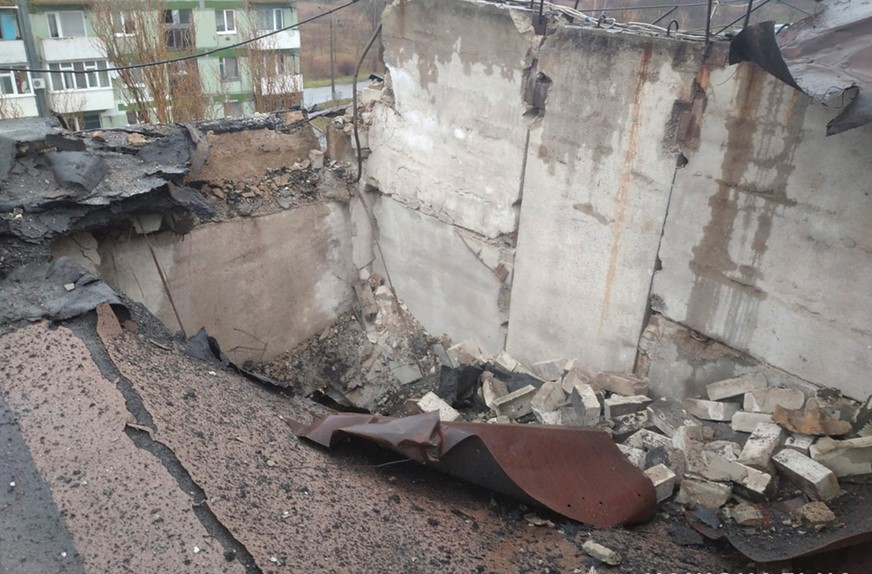 Один із снарядів влучив у дах 5-поверхового будинку на 3-му мікрорайоні спричинивши значні руйнування.