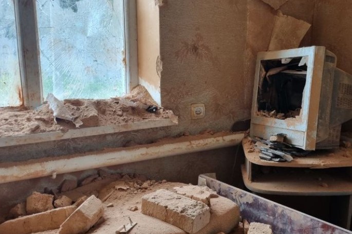 Валентина Трофимчук — мешканка села розповідає, разом із родиною наводять лад у своєму будинку: діру в стіні заклали плитами ОСБІ та плівкою, прибирають побиту цеглу та виносять знищені меблі.