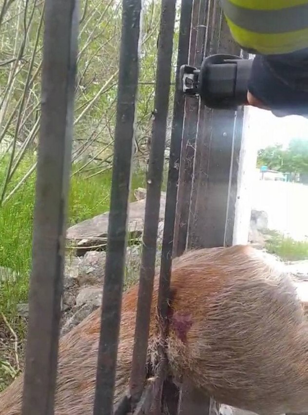 Прибыв на место инцидента чрезвычайники выяснили, в железном заборе застряла косуля.