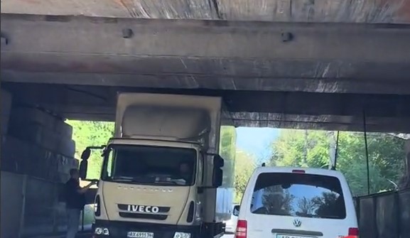 На опублікованому відеоролику можна побачити, що водій не врахував габаритів своєї машини і просто врізався в міст.