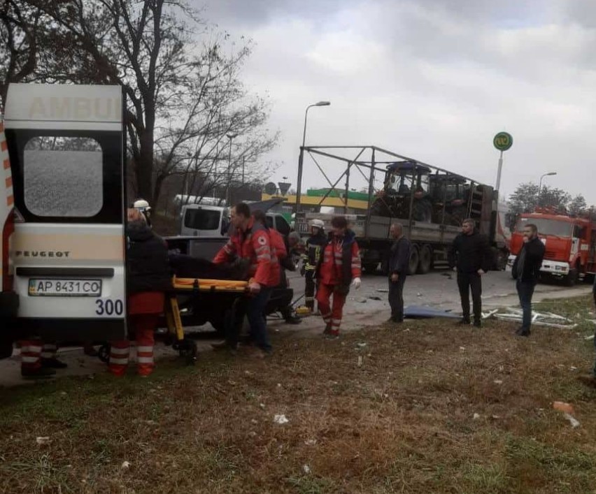 Во вторник, 12 ноября, в районе Опытной станции, что в Коммунарском районе Запорожья произошло ДТП с участием “Таврии” и МАЗа, который перевозил тракторы.