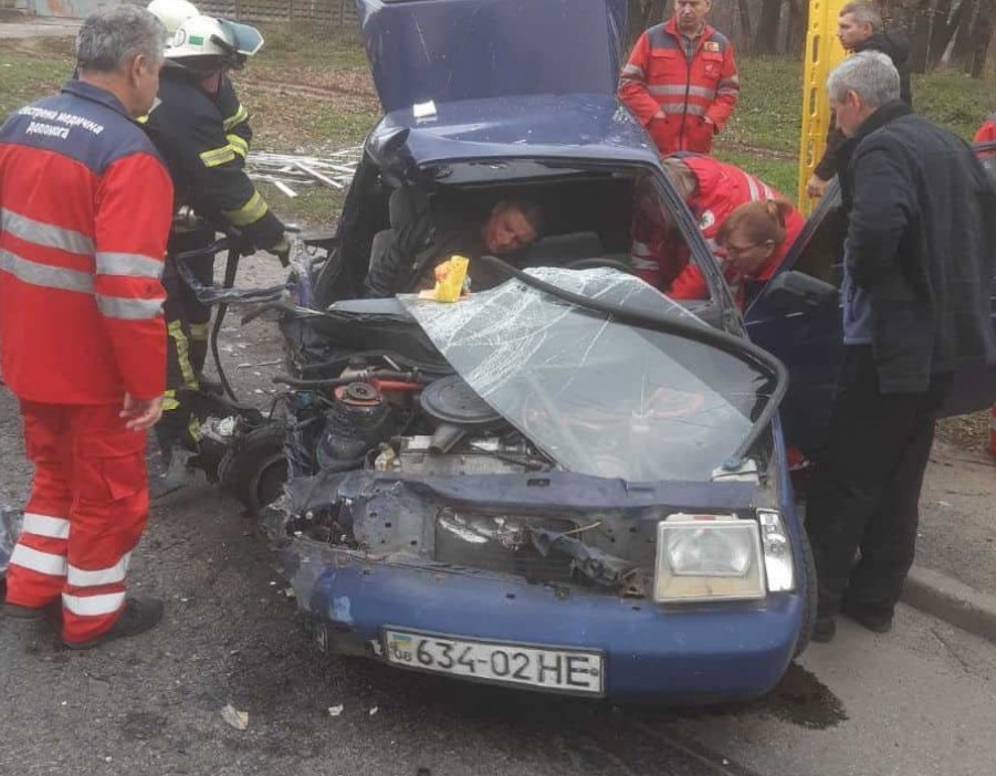 В результате ДТП “Таврия” получила серьезные механические повреждения, ее пассажир был зажат конструкциями легкового авто.