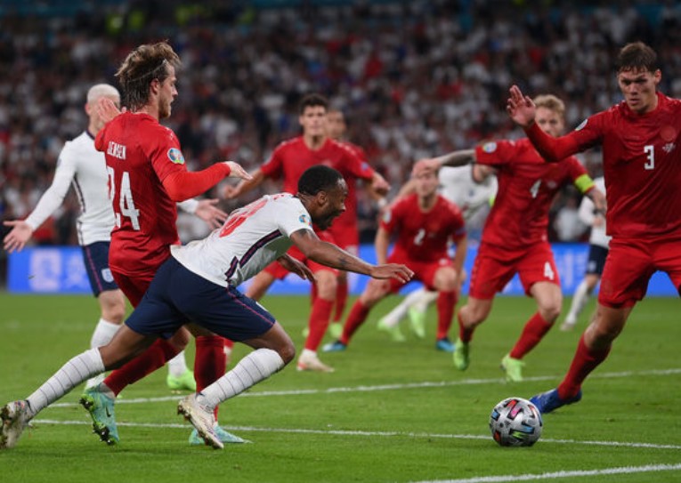 Реабилитироваться за упущенную возможность Стерлинг мог менее чем за минуту – он готов был замыкать еще один прострел с фланга, но его прикосновение не понадобилось: в попытке заблокировать передачу мяч в свои ворота срезал защитник сборной Дании Симон Кьер.