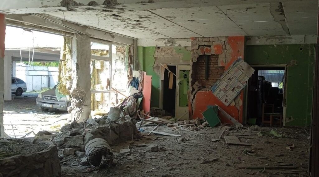 Судячи з опублікованого фото, снаряд влучив у внутрішній двір школи, що спричинило серйозні руйнування.
