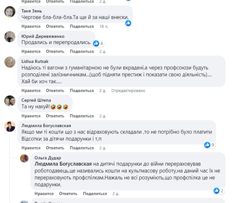 Ось що пишуть залізничники у своїх коментарях стосовно діяльності профспілок: