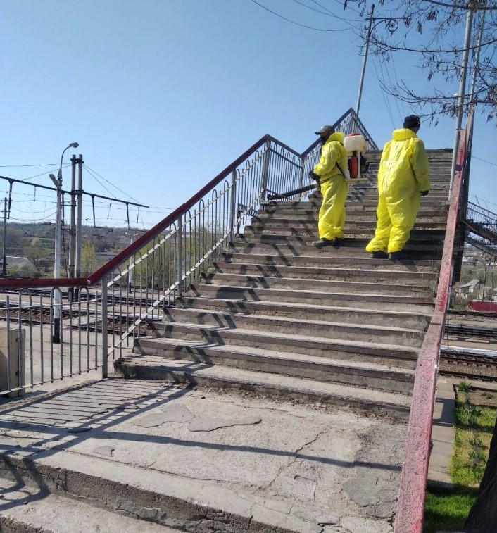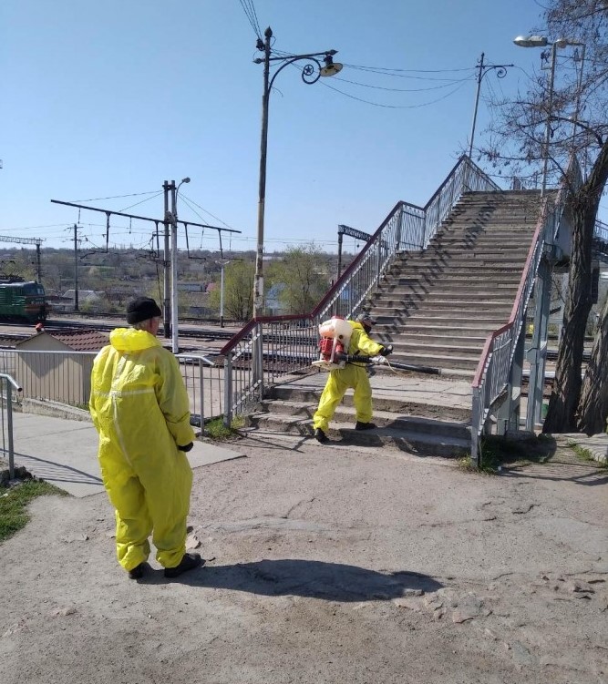 Работники КП «Благоустрій – Василівка» провели обработку хлорсодержащим дезинфицирующим средством мест общего пользования, где обычно наблюдается большое скопление людей: тротуаров, территорий вокруг лавочек, подземного перехода, железнодорожного моста, территорий вблизи крупнейших продуктовых магазинов города.