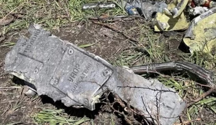 Военные не разрешили журналистам называть конкретное место взрывов, но разрешили сфотографировать обломок российской ракеты. От нее остался только скошенный кусок металла в траве – с надписью на русском языке.