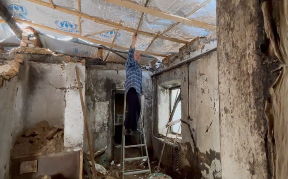 После попадания снаряда оккупантов в доме вспыхнул пожар. Пока не приехали спасатели, тушили вместе с соседями, своими силами, рассказывает Любовь Смирнова.