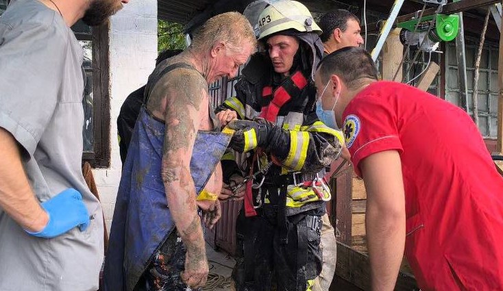 Аби надати йому допомогу другий чоловік спустився до нього та до прибуття рятувальників знаходився поруч.