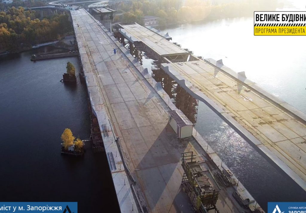 На подходе к мосту со стороны Хортицкого района (сооружение № 3) выполняются работы по армированию 2 захватки (38,5 п.м.), а также по монтажу опалубки 3 захватки (42 п.м.) плиты проезда. На подходе со стороны острова Хортица (сооружение № 5-н) уже выполнен монтаж опалубки VIII и IХ захваток (длина 53,0м) и пока выполняются работы по армированию плиты проезжей части (VIII и IХ захватки).