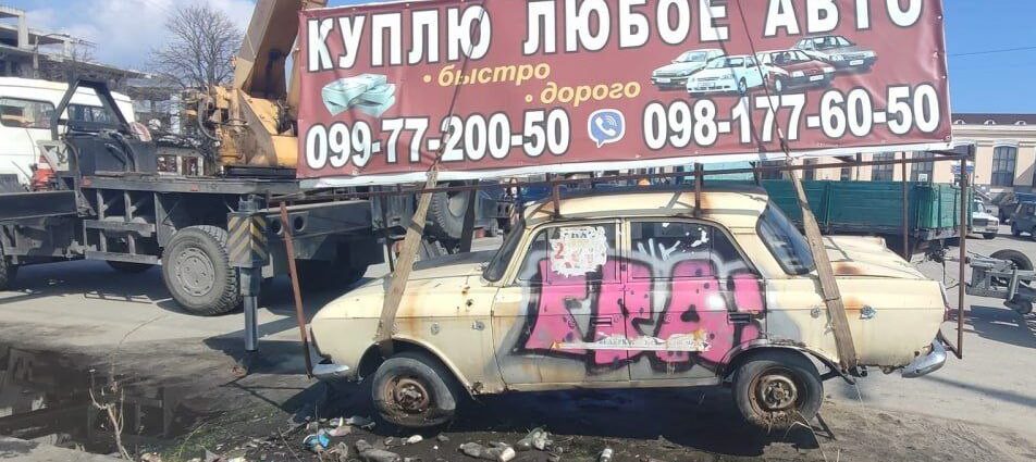 З привокзальної площі прибрали рекламний автомотлох