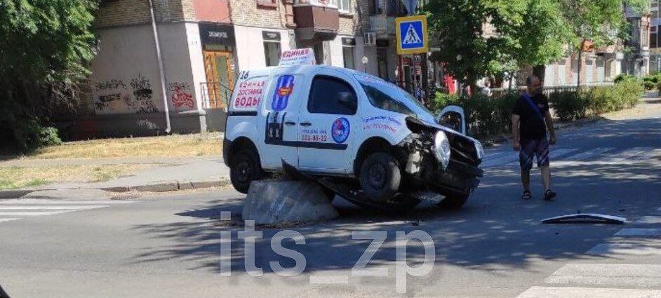 ДТП в центре Запорожья: Авто доставки воды влетело в бетонный блок