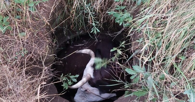 Запорізькі надзвичаники рятували корову, яка провалилася у колодязь, – ФОТО