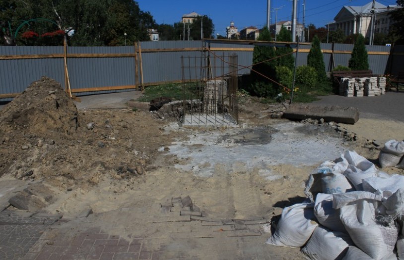 На Аллее Трудовой славы ремонтируют входную группу с колоннами