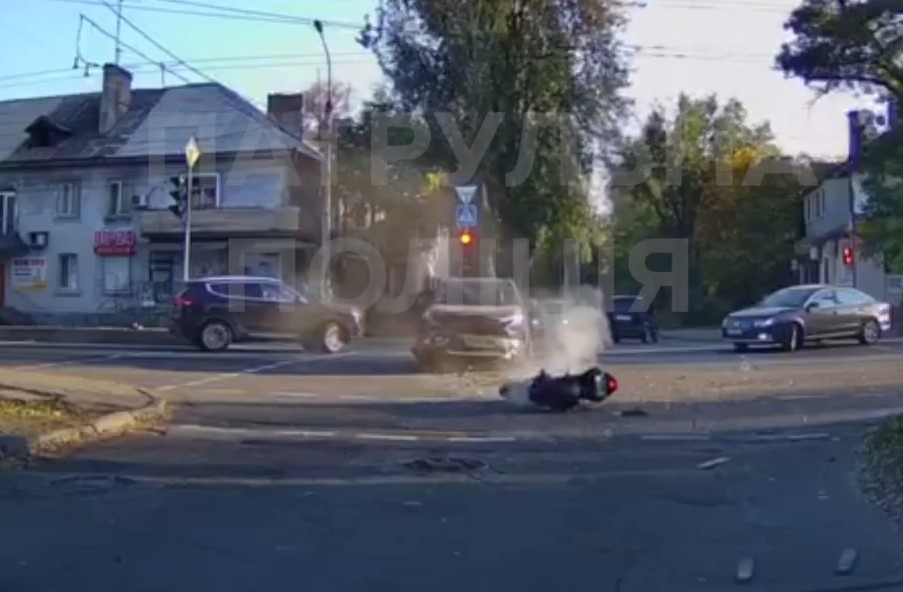 Жуткая авария в центре Запорожья: Столкнулись Toyota и мотоцикл, – ВИДЕО