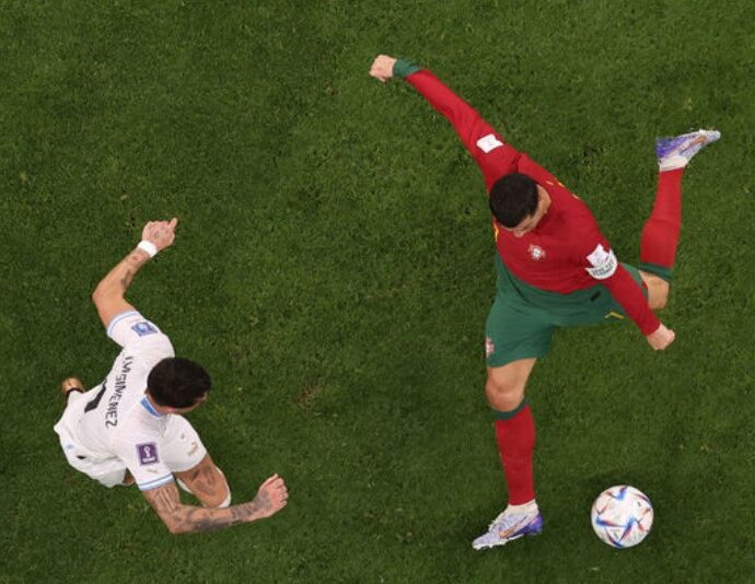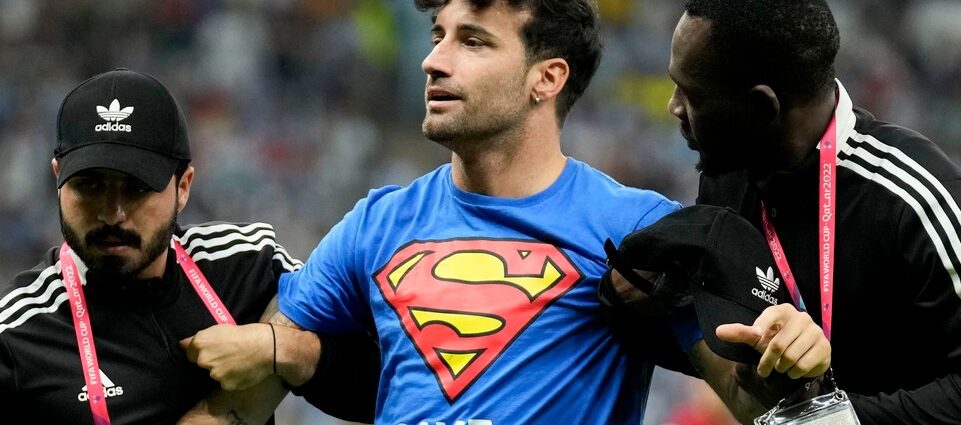 “Save Ukraine”. Фан в футболке с надписью в поддержку Украины прервал матч Португалия – Уругвай на ЧМ-2022 2022-11-29 29.11.2022