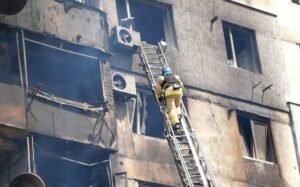 За його словами, площа пожежі становить близько 1 тисячі квадратних метрів, “щодо постраждалих інформація уточнюється”.