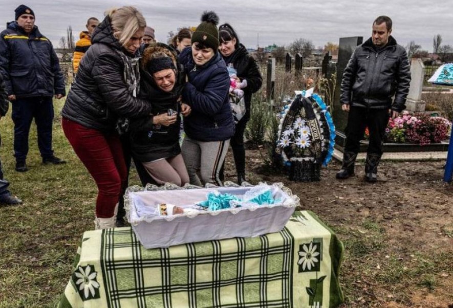 У місті Вільнянську Запорізької області в суботу, 26 листопада, поховали новонародженого малюка, який загинув, внаслідок обстрілу російських міських терористів пологового відділення лікарні.