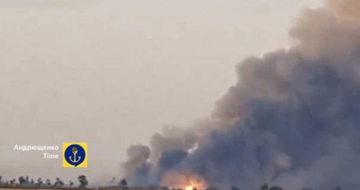 Раніше фотографії та відеозаписи великого вибуху, ймовірно, на околицях Генічеська почали поширюватися в місцевих телеграм-каналах. На них видно величезний шлейф диму, що здіймається далеко на горизонті, і чути звуки вибухів.