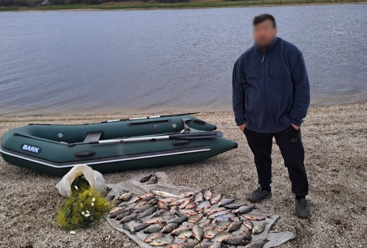 Під час огляду поліцейські вилучили в браконьєра 85 рибин різних видів (карасі, сазани, плітки, густери та судак), знаряддя лову та човен.