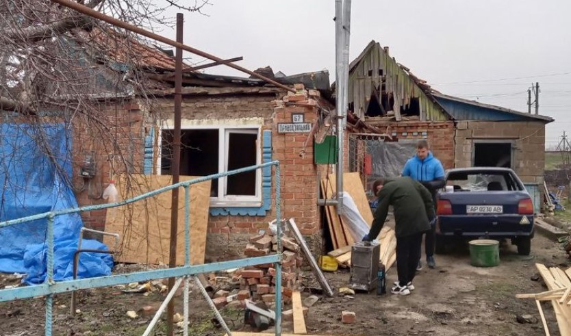 В 16 часов коммунальные службы засыпали яму на дороге в эпицентре взрыва. Сейчас люди чинят крыши, зашивают окна на домах стройматериалами, которые предоставили Степненская громада и волонтеры.