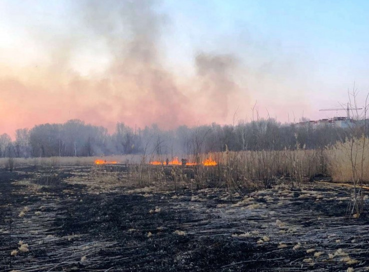Субботним вечером в Службу спасения «101» поступило сообщение о пожаре за домами по улице Новокузнецкой. Там загрорелся сухой прошлогодний камыш.