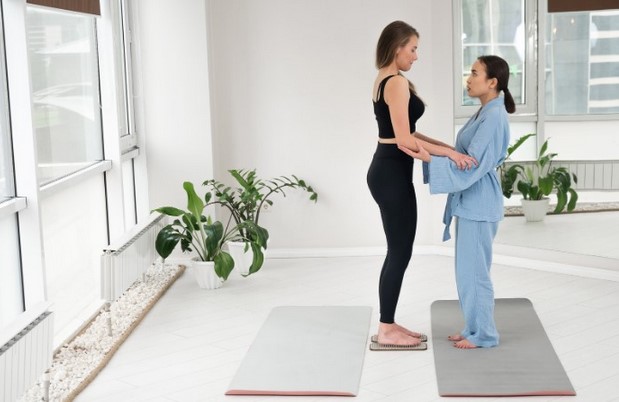 - Фізичному. Відбувається робота з м’язами та сухожиллями міофасціального ланцюга. Концентрована напруга в стопах сприяє посиленню кровообігу. Всі м’язи та органи забезпечуються потужним припливом крові та кисню. Це живить та покращує їх функції.