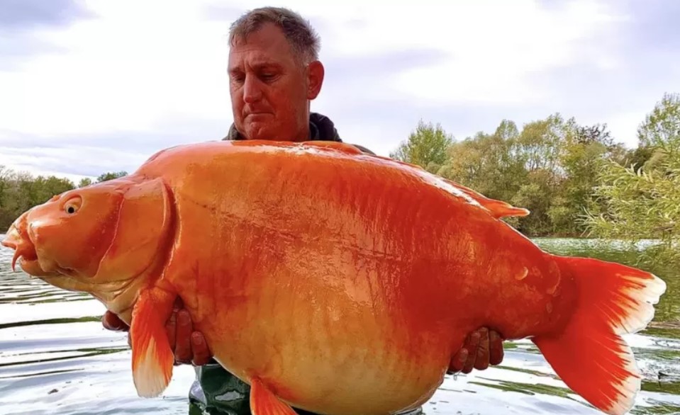 Рыба, объяснил он, была гибридом кожаного карпа и карпа кои, заманить ее в сетку удалось после 25-минутной битвы.